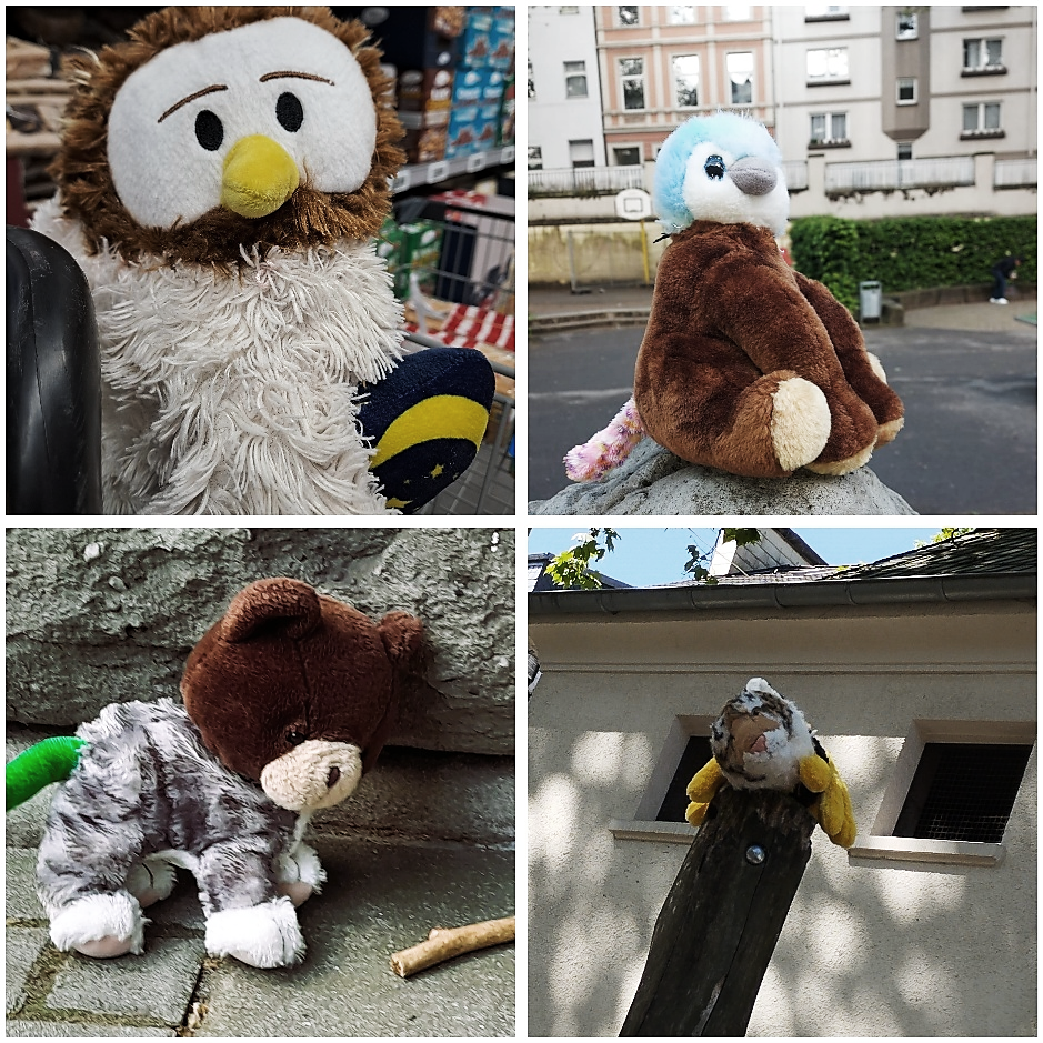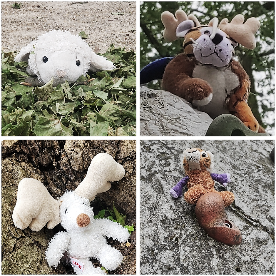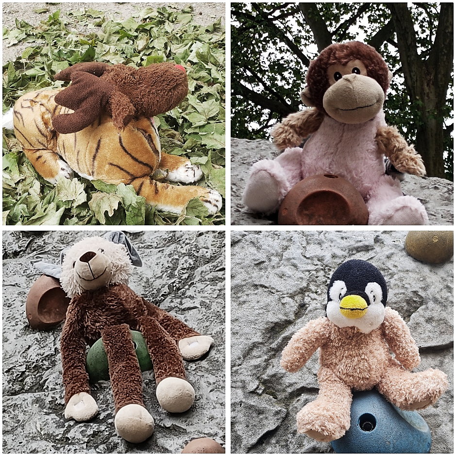 Mit Kreativität und Sorgfalt wurden unterschiedliche Stofftiere neu kombiniert, gestaltet und wirkungsvoll präsentiert.